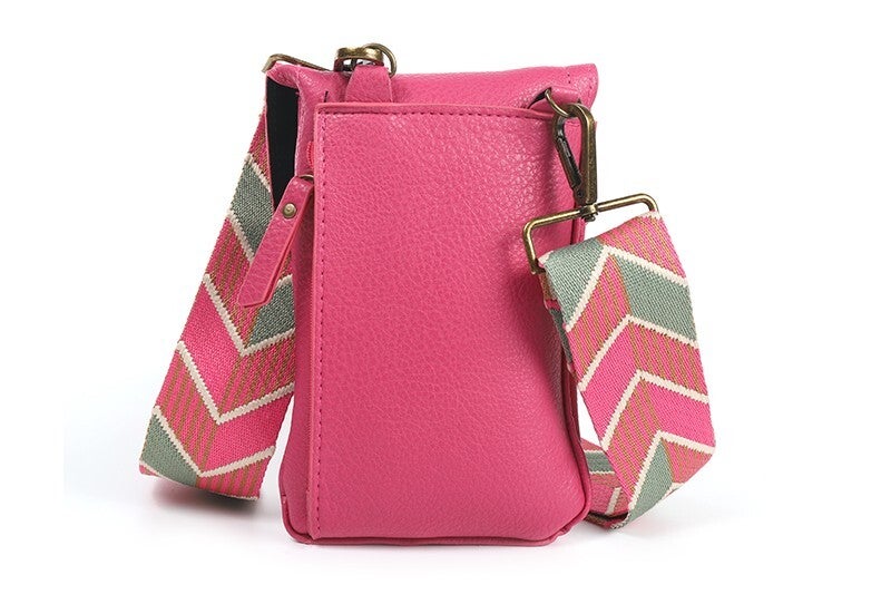 Marken is een stylisch telefoontasje van fijn formaat om overal mee naar toe te nemen. Dit telefoontasje bestaat uit een vak waar iedere soort mobiele telefoon goed in past. Het hoofdvak wordt afgesloten door een envelopflap met magneetsluiting. De geweven schouderband / bag strap geeft dit stylische tasje een unieke look. Aan de achterkant van het tasje zit een klein vakje afgesloten met rits. De perfecte manier om kleine kostbaarheden veilig te bewaren bewaren.